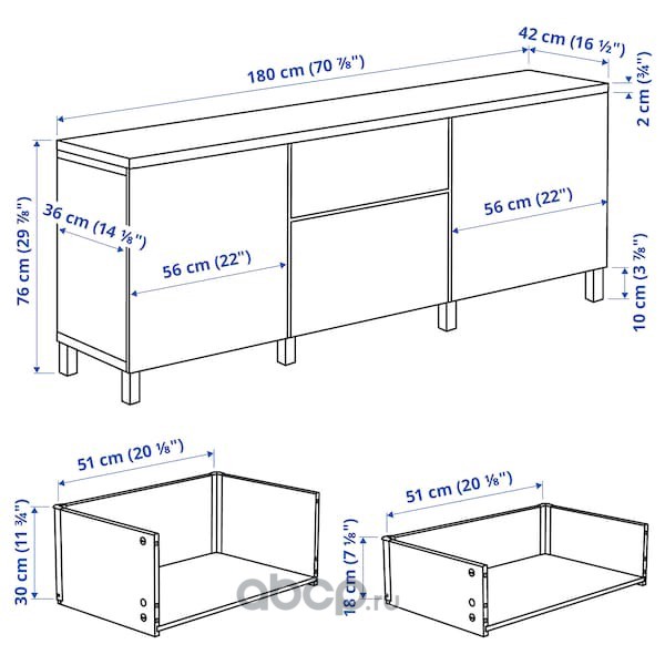 BESTÅ БЕСТО Комбинация для хранения с ящиками, черно-коричневый/Лаппвик/стуббарп черно-коричневый 180X42X76см
