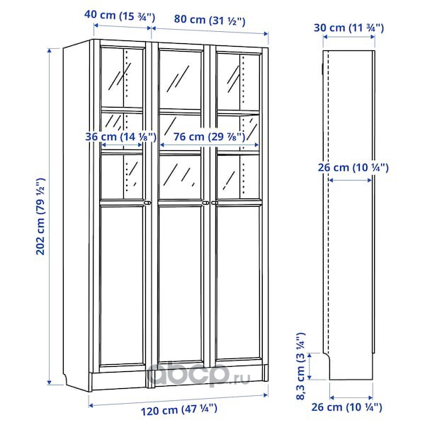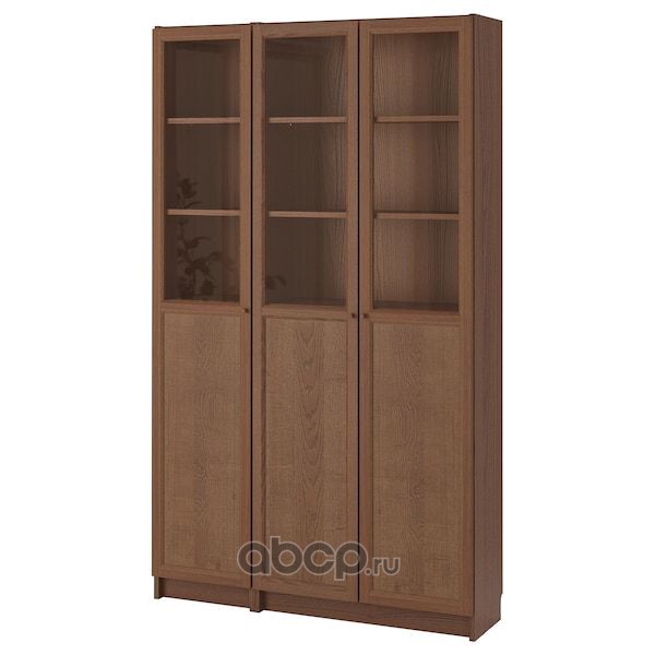 BILLY БИЛЛИ / OXBERG ОКСБЕРГ Стеллаж/панельные/стеклянные двери, коричневый ясеневый шпон/стекло 120X30X202см