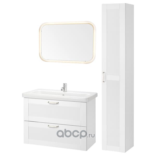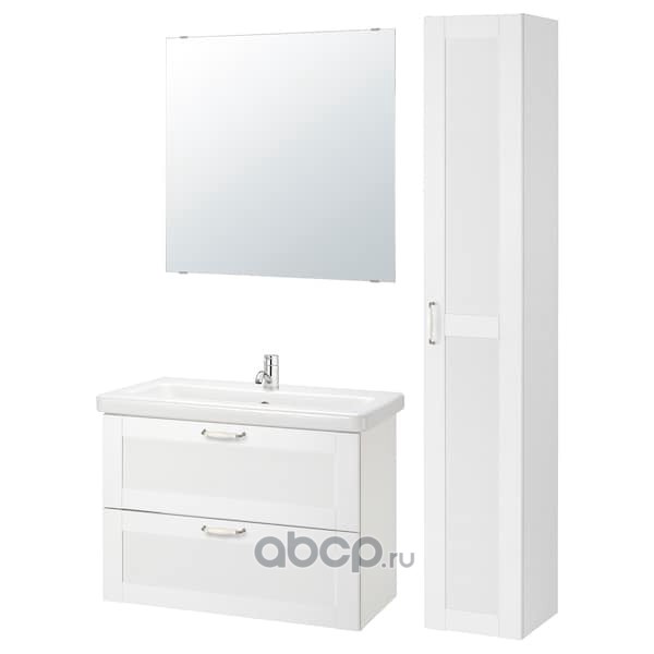 FISKÅN ФИСКОН / TVÄLLEN ТВЭЛЛЕН Комплект мебели для ванной,8 предм., Йельсен белый/ПИЛКОН смеситель 84X43X65см