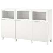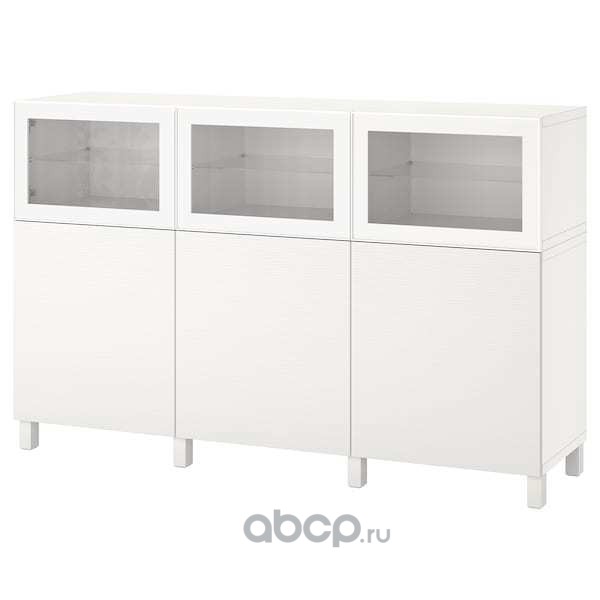 BESTÅ БЕСТО Комбинация для хранения с дверцами, Лаппвик/стуббарп/Синдвик белый прозрачное стекло 180X42X114 см