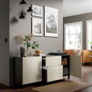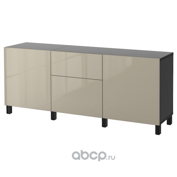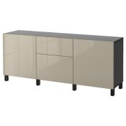 BESTÅ БЕСТО Комбинация для хранения с ящиками, черно-коричневый/сельсв/стуббарп глянцевый/бежевый 180X42X74см