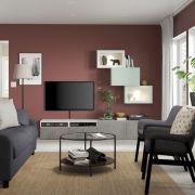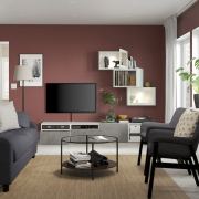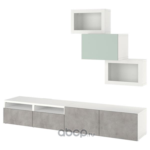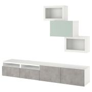 BESTÅ БЕСТО Комбинация для ТВ/стеклянные дверцы, белый КЭЛЛЬВИКЕН/Хёртвикен светлый серо-зеленый 240x42x190см