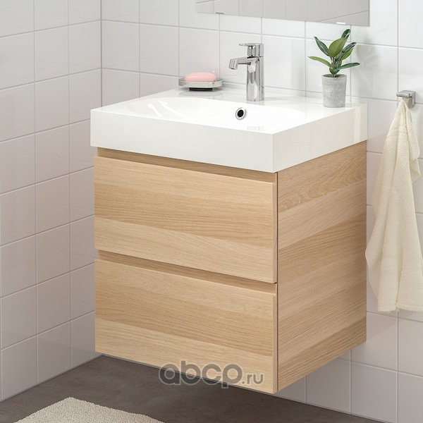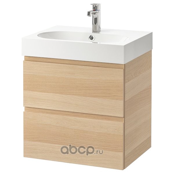 GODMORGON ГОДМОРГОН / BRÅVIKEN БРОВИКЕН Шкаф для раковины с 2 ящ, под беленый дуб/БРОГРУНД смеситель 61X49X68см