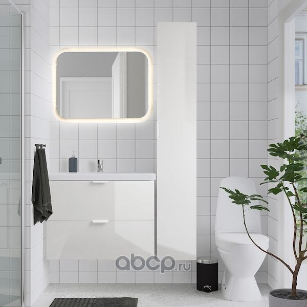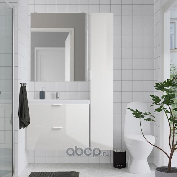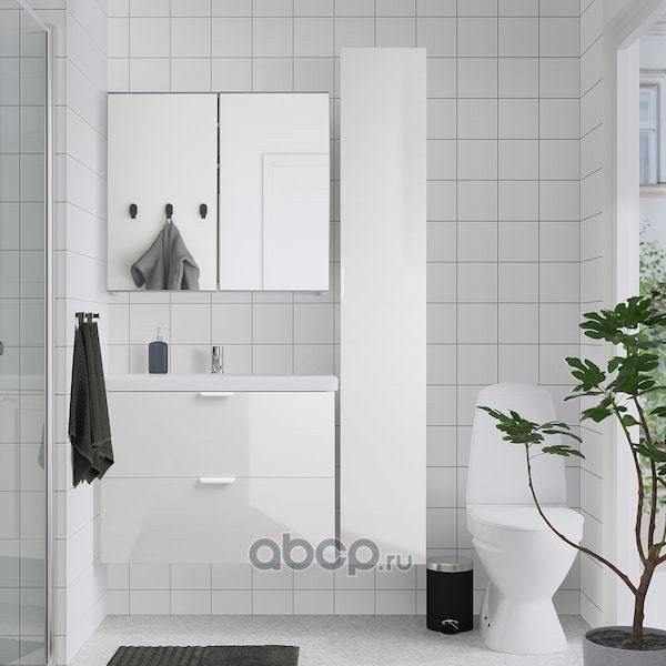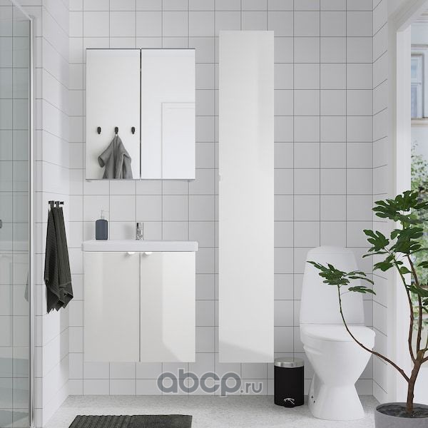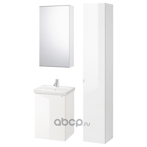 FISKÅN ФИСКОН / TVÄLLEN ТВЭЛЛЕН Комплект мебели для ванной,7 предм., глянцевый белый/ПИЛКОН смеситель 44X43X65см
