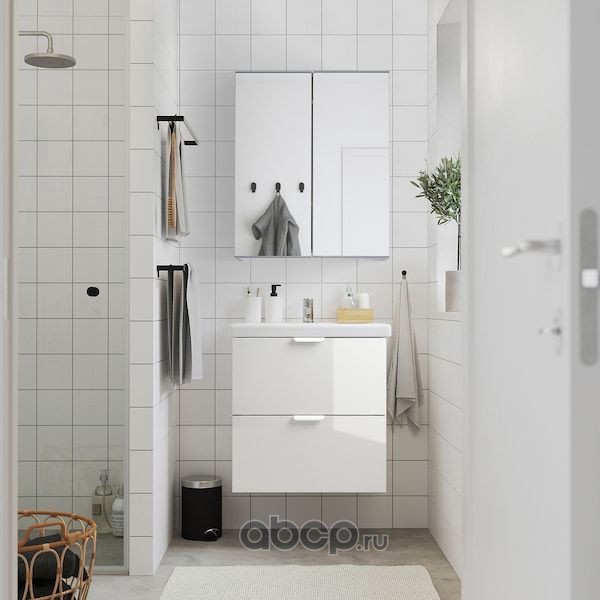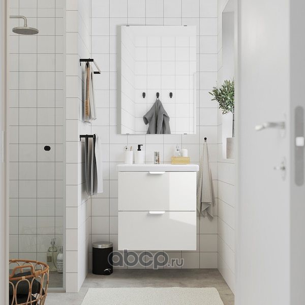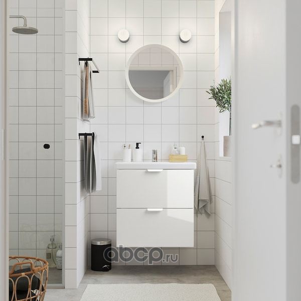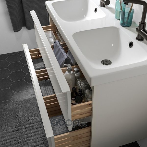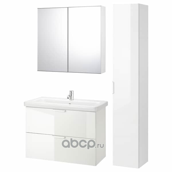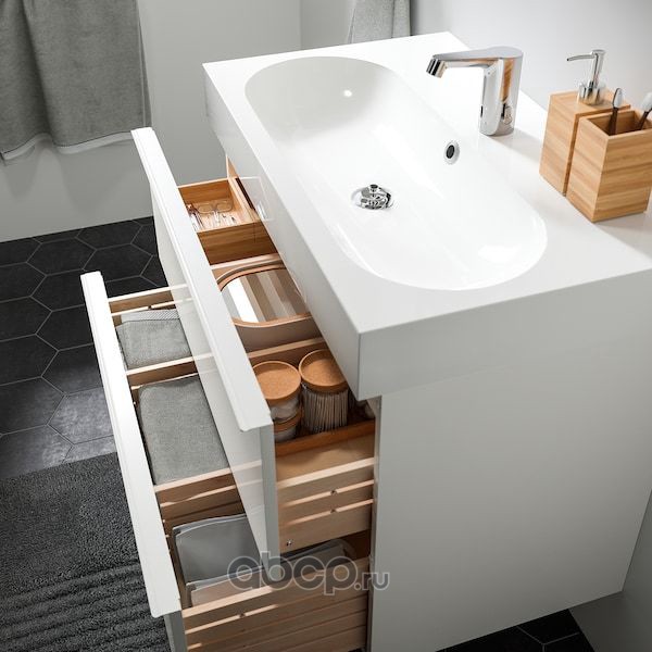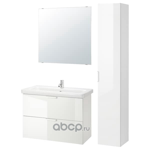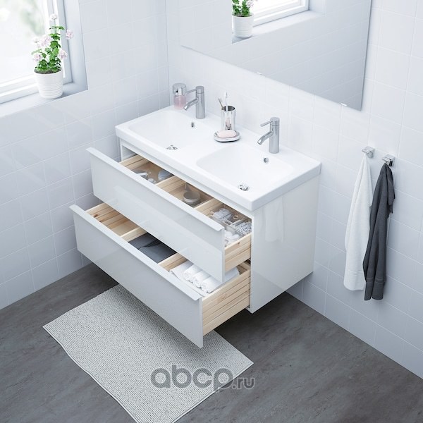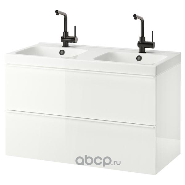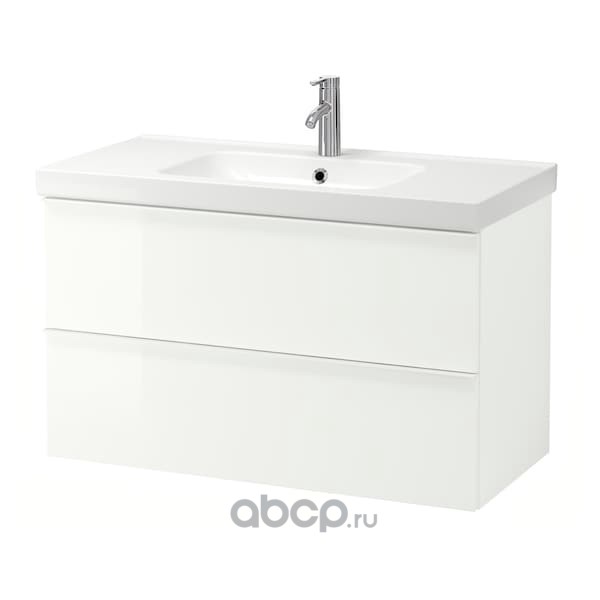 GODMORGON ГОДМОРГОН / ODENSVIK ОДЕНСВИК Шкаф для раковины с 2 ящ, глянцевый белый/ДАЛЬШЕР смеситель 103X49X64см