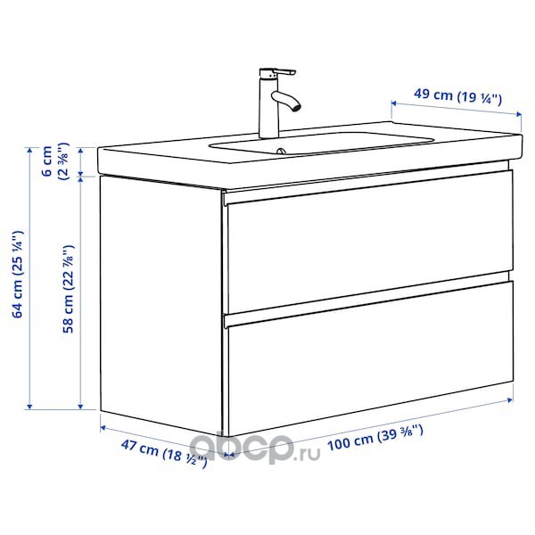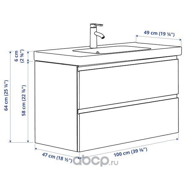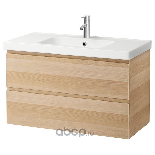 GODMORGON ГОДМОРГОН / ODENSVIK ОДЕНСВИК Шкаф для раковины с 2 ящ, под беленый дуб/ДАЛЬШЕР смеситель 103X49X64см