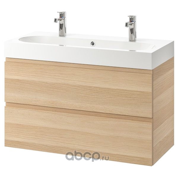 GODMORGON ГОДМОРГОН / BRÅVIKEN БРОВИКЕН Шкаф для раковины с 2 ящ, под беленый дуб/БРОГРУНД смеситель 100X48X68см