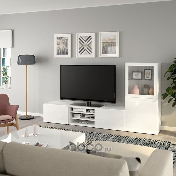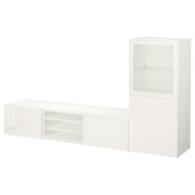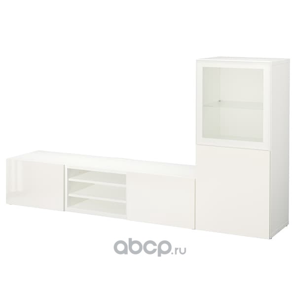 BESTÅ БЕСТО Шкаф для ТВ, комбин/стеклян дверцы, белый/Сельсвикен глянцевый/белый прозрачное стекло 240X42X129см