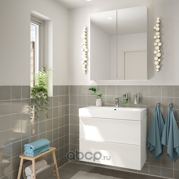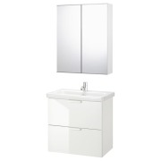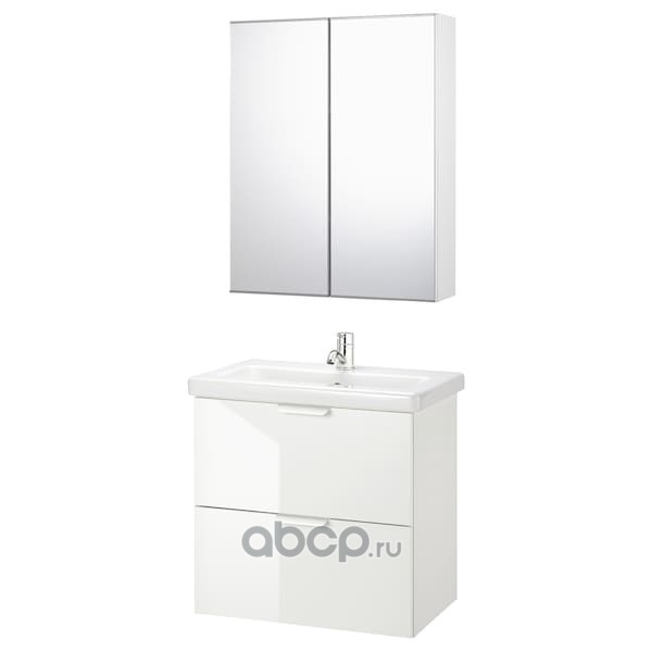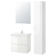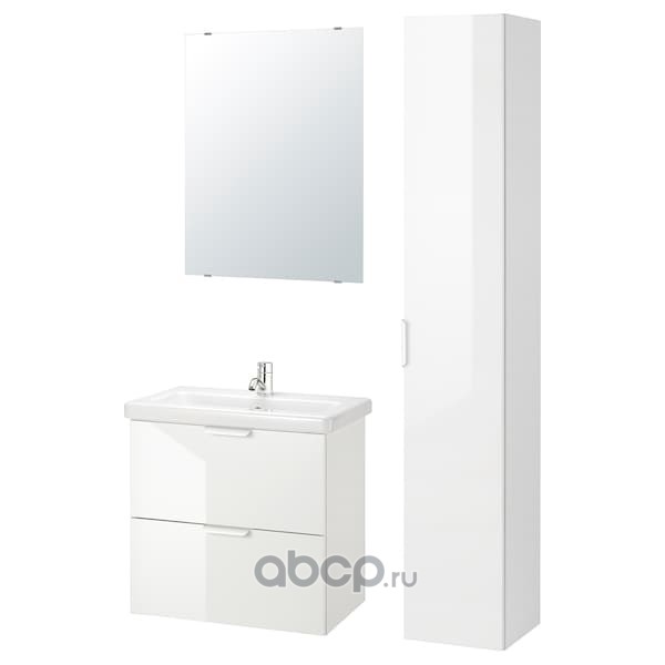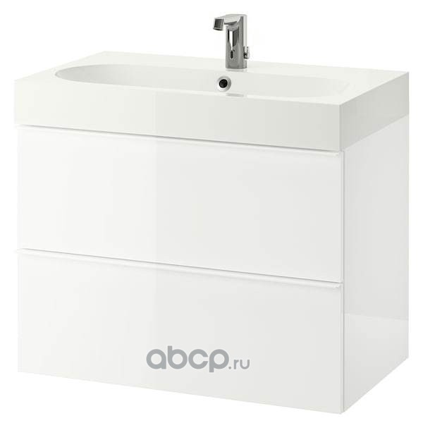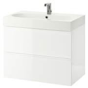 GODMORGON ГОДМОРГОН / BRÅVIKEN БРОВИКЕН Шкаф для раковины с 2 ящ, глянцевый белый/БРОГРУНД смеситель 80X48X68см