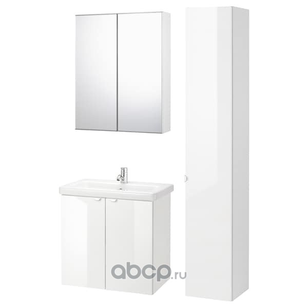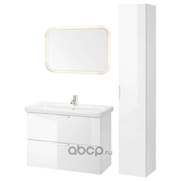 FISKÅN ФИСКОН / TVÄLLEN ТВЭЛЛЕН Комплект мебели для ванной,8 предм., глянцевый белый/ПИЛКОН смеситель 84X43X65см