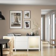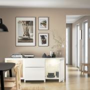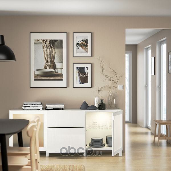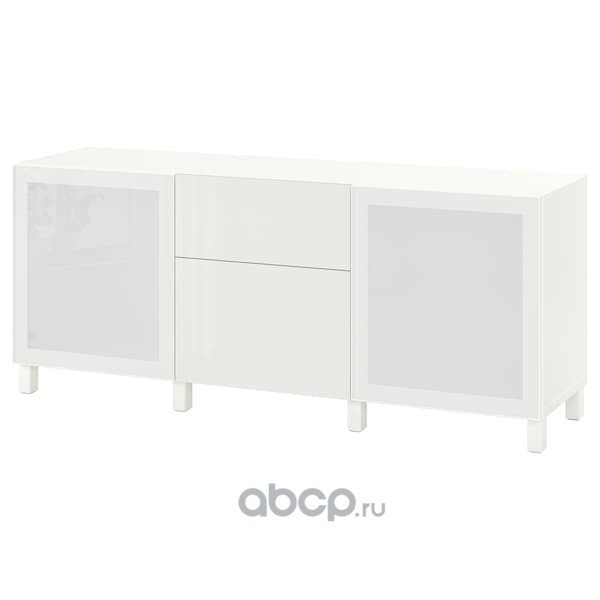 BESTÅ БЕСТО Комбинация для хранения с ящиками, белый/сельсв/стуббарп глянцевый/белый матовое стекло 180x42x74см