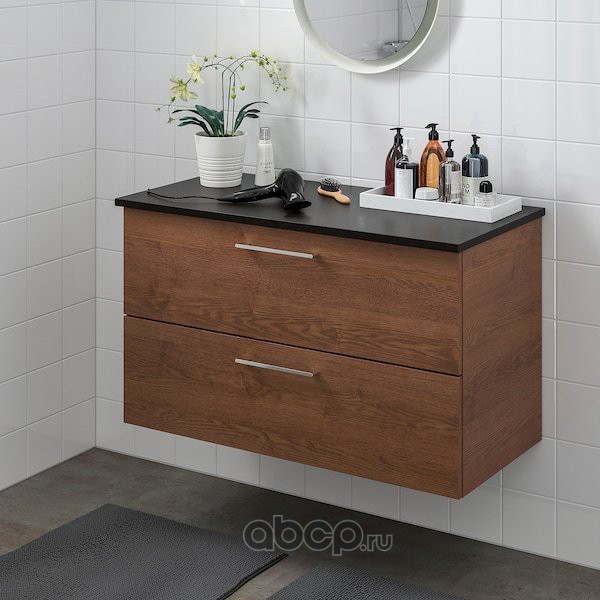 GODMORGON ГОДМОРГОН / TOLKEN ТОЛКЕН Шкаф для раковины с 2 ящ, под коричневый мореный ясень/антрацит 102X49X60см