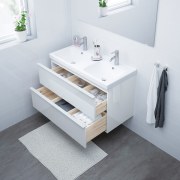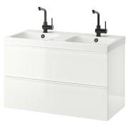 GODMORGON ГОДМОРГОН / ODENSVIK ОДЕНСВИК Шкаф для раковины с 2 ящ, глянцевый белый/ЛУНДШЭР смеситель 103X49X64см