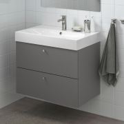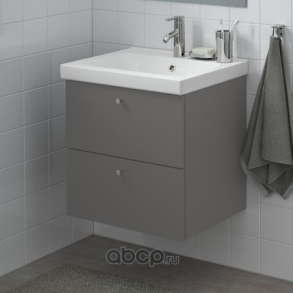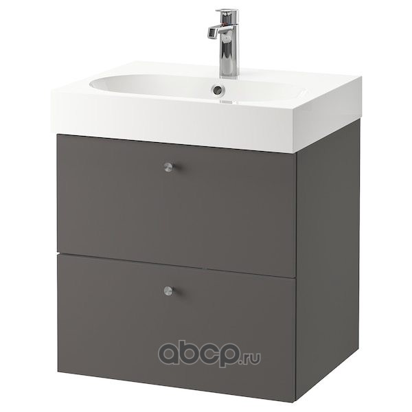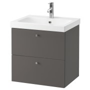 GODMORGON ГОДМОРГОН / BRÅVIKEN БРОВИКЕН Шкаф для раковины с 2 ящ, Гилльбурен темно-серый/БРОГРУНД смеситель 61X49X68см