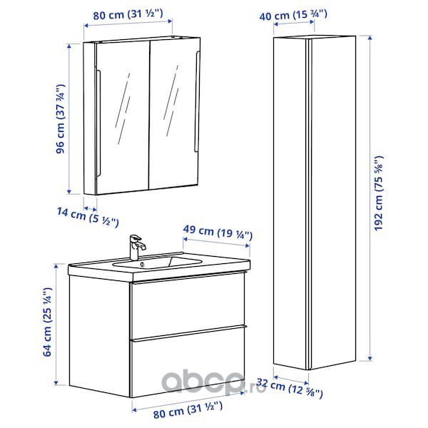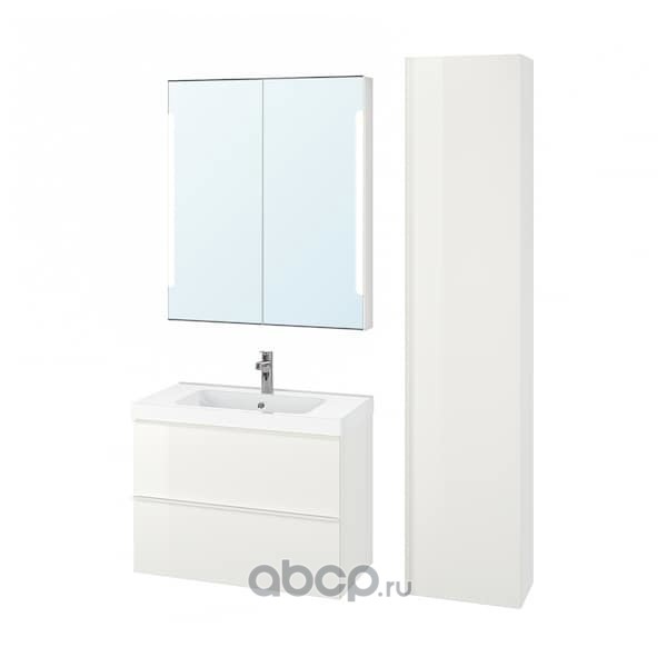 GODMORGON ГОДМОРГОН / ODENSVIK ОДЕНСВИК Комплект мебели для ванной,5 предм., глянцевый белый/БРОГРУНД смеситель 83см