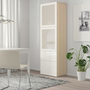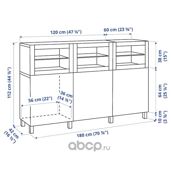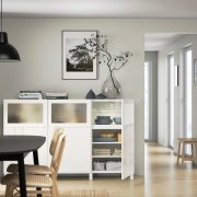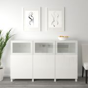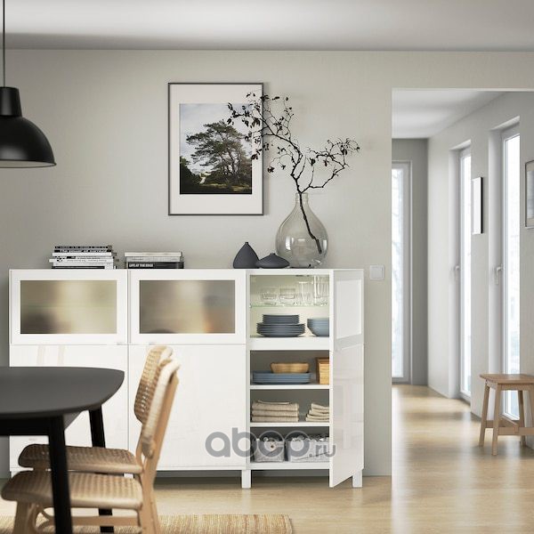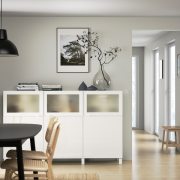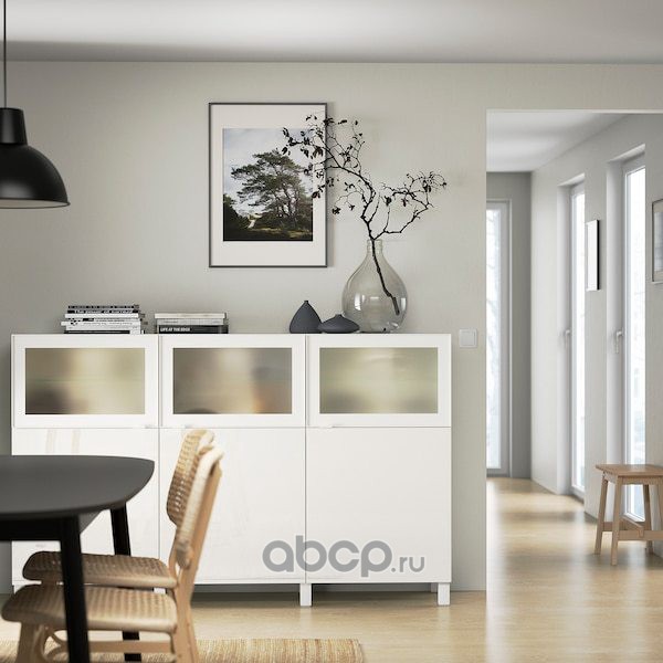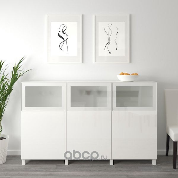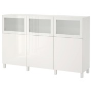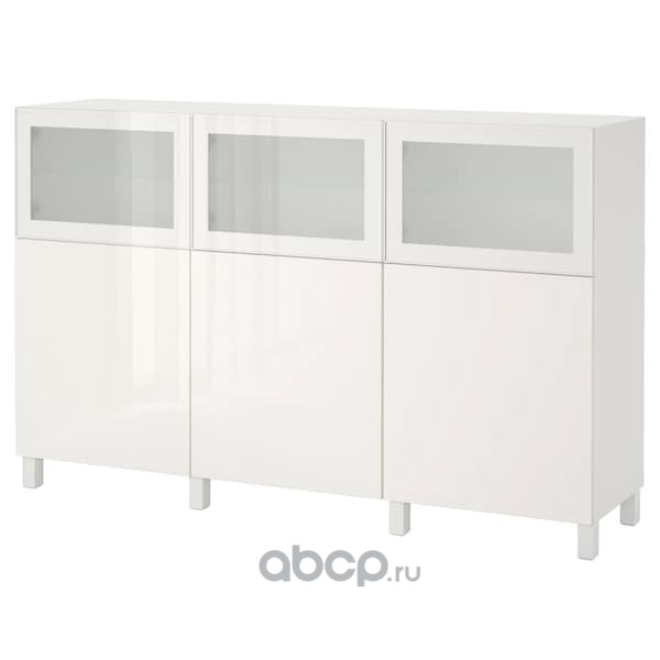 BESTÅ БЕСТО Комбинация для хранения с дверцами, белый Сельсвикен/Глассвик глянцевый/белый матовое стекло 180x42x112см