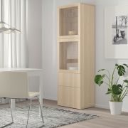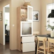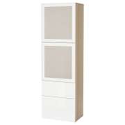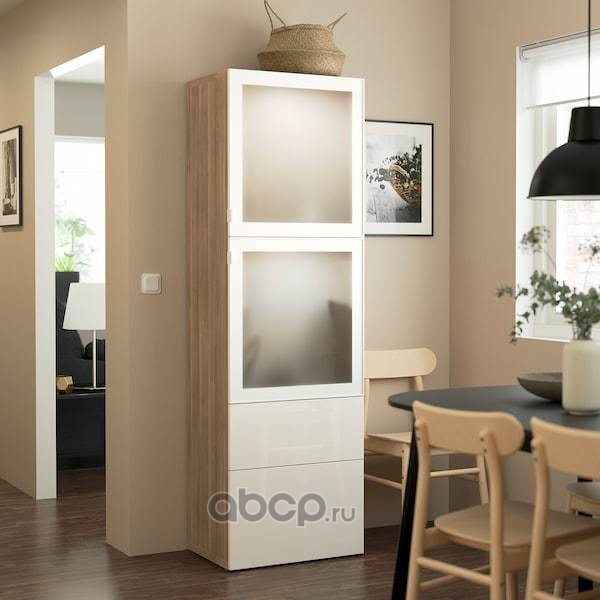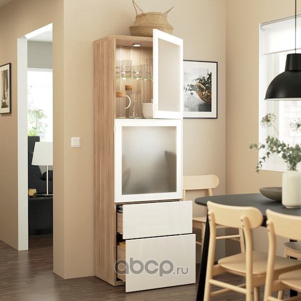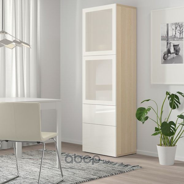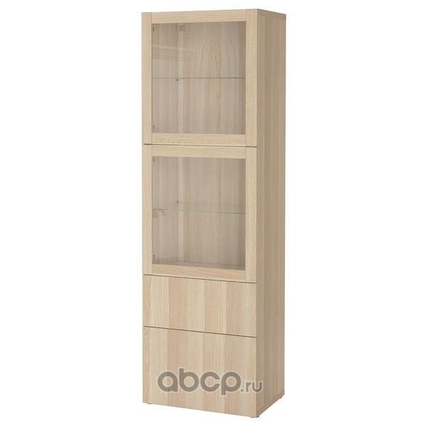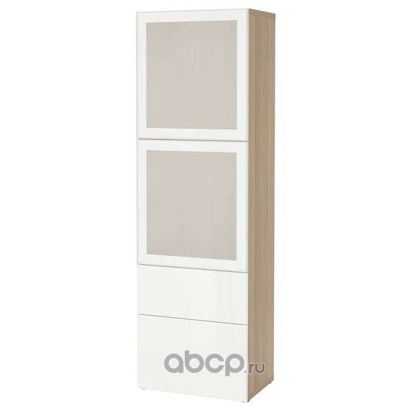 BESTÅ БЕСТО Комбинация д/хранения+стекл дверц, под беленый дуб/Сельсвикен глянцевый/белый матовое стекло 60x42x193см
