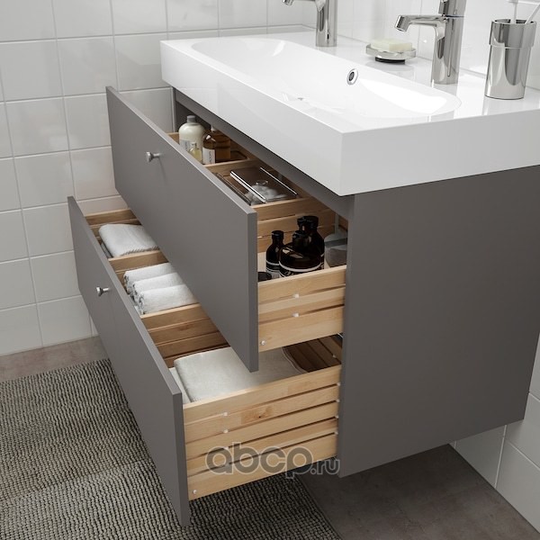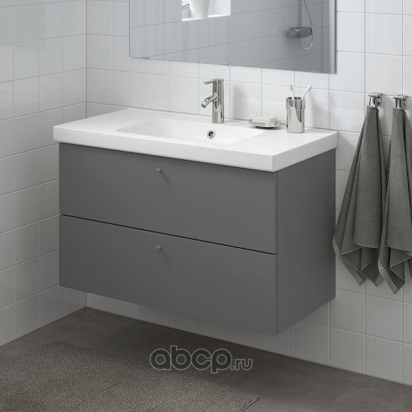 GODMORGON ГОДМОРГОН / ODENSVIK ОДЕНСВИК Шкаф для раковины с 2 ящ, Гилльбурен темно-серый/ДАЛЬШЕР смеситель 103X49X64см