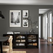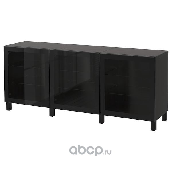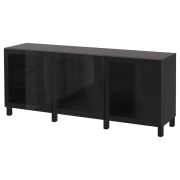 BESTÅ БЕСТО Комбинация для хранения с дверцами, черно-коричневый/глассвик/стуббарп черный/прозрачное стекло 180X42X74см