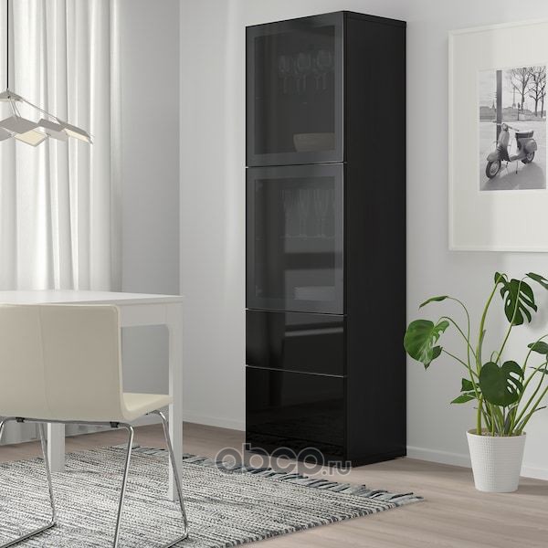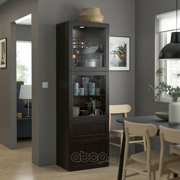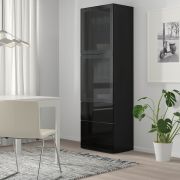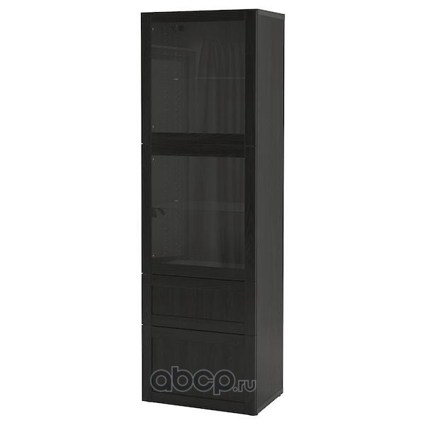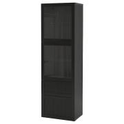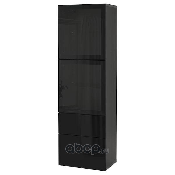 BESTÅ БЕСТО Комбинация д/хранения+стекл дверц, черно-коричневый/Сельсвикен глянцевый/черный дымчатое стекло 60X42X193см