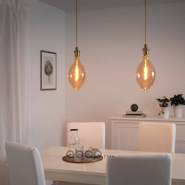 ROLLSBO РОЛЛЬСБУ Светодиод E27 140 лм, регулируемая яркость/форма воздушного шара коричневый, прозрачное стекло 180мм