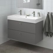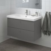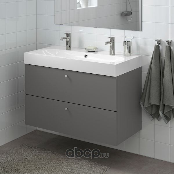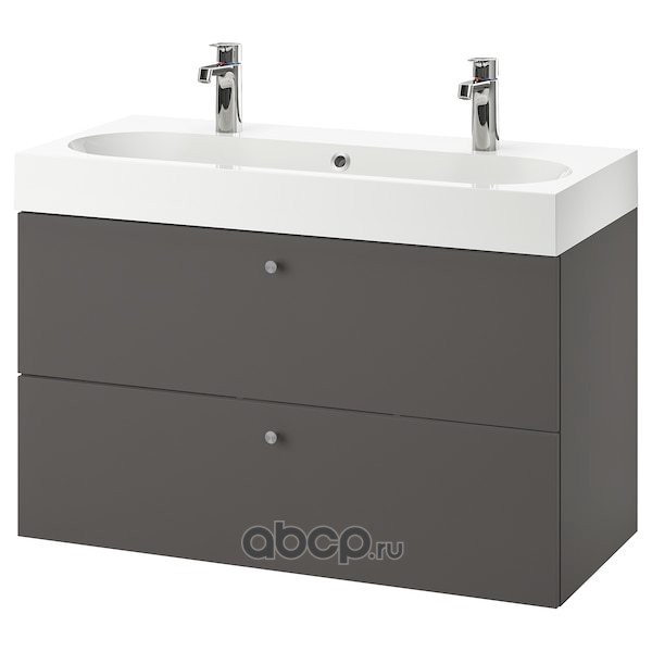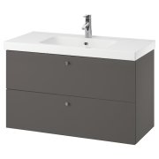 GODMORGON ГОДМОРГОН / BRÅVIKEN БРОВИКЕН Шкаф для раковины с 2 ящ, Гилльбурен темно-серый/БРОГРУНД смеситель 100X48X68см