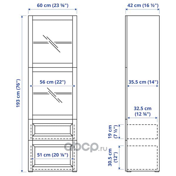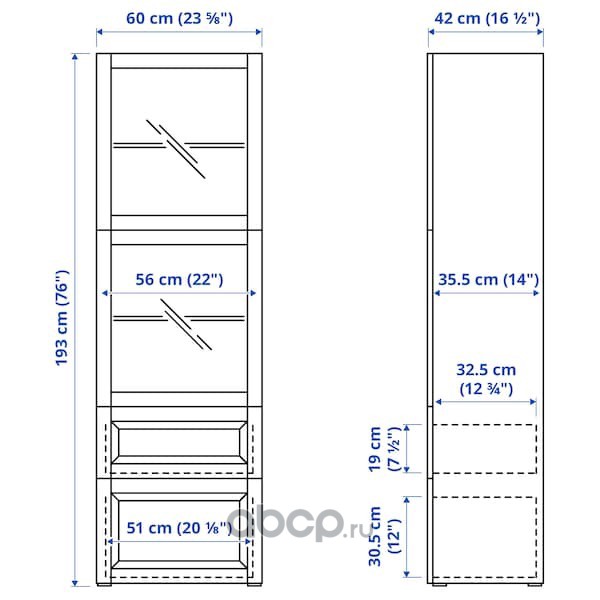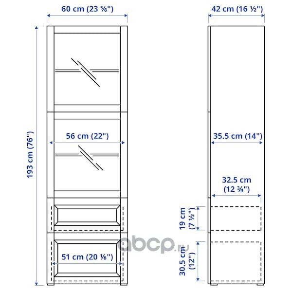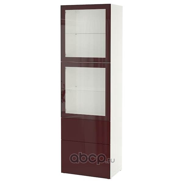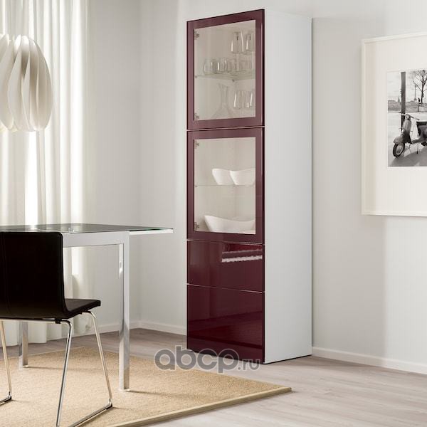 BESTÅ БЕСТО Комбинация д/хранения+стекл дверц, белый Сельсвикен/темный красно-коричневый прозрачное стекло 60X42X193см