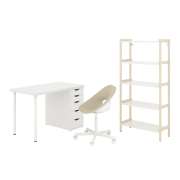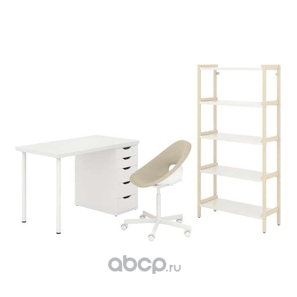 LAGKAPTEN/ELDBERGET ЛАГКАПТЕН/ЭЛДБ / EKENABBEN ЭКЕНАББЕН Стол и комбинация для хранения, и рабочий стул бежевый/белый