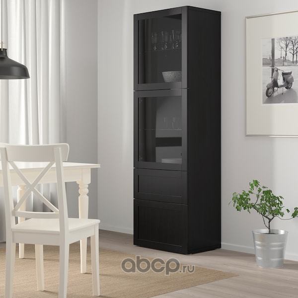 BESTÅ БЕСТО Комбинация д/хранения+стекл дверц, черно-коричневый/Ханвикен черно-коричневый прозрачное стекло 60X42X193см