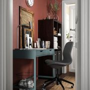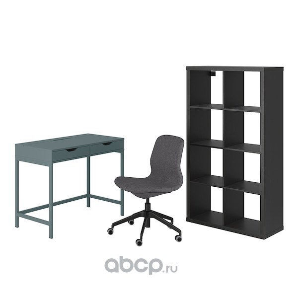 ALEX/LÅNGFJÄLL АЛЕКС/ЛОНГФЬЕЛЛЬ / KALLAX КАЛЛАКС Стол и комбинация для хранения, и рабочий стул серо-бирюзовый/черный