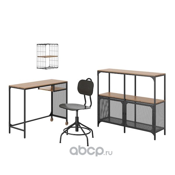 FJÄLLBO/KULLABERG ФЬЕЛЛЬБО/КУЛЛАБЕР / GULLHULT ГУЛЛЬХУЛЬТ Стол и комбинация для хранения, и рабочий стул черный/сосна
