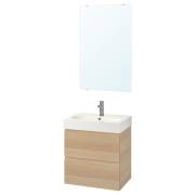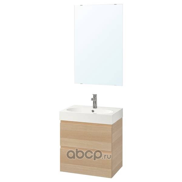 GODMORGON ГОДМОРГОН / BRÅVIKEN БРОВИКЕН Комплект мебели для ванной,4 предм., под беленый дуб/БРОГРУНД смеситель 61см