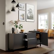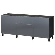 BESTÅ БЕСТО Комбинация для хранения с ящиками, черно-коричневый/риксвикен под брашированное темное олово 180X42X74см