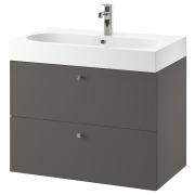 GODMORGON ГОДМОРГОН / BRÅVIKEN БРОВИКЕН Шкаф для раковины с 2 ящ, Гилльбурен темно-серый/БРОГРУНД смеситель 80X48X68см