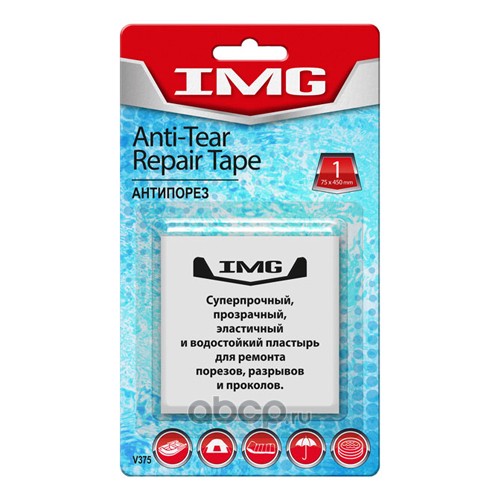 | IMG | V375 | Сверхпрочный прозрачный пластырь для заделывания порезов и дыр "Антипорез" , 75ммх450мм, "IMG", США . |