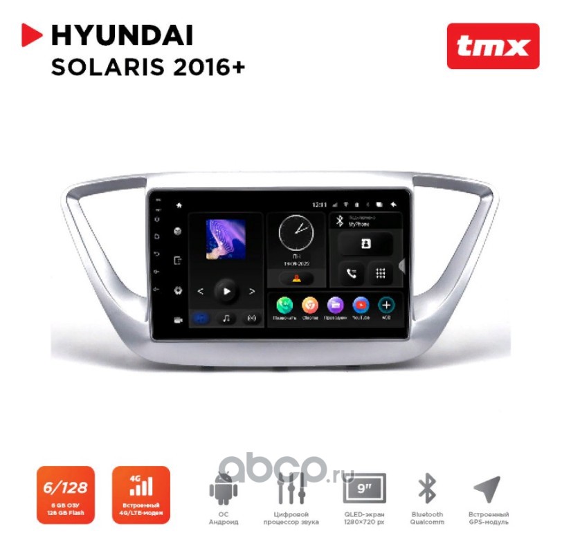 Автомагнитола штатная MAXIMUM TMX-2402-6 DSP, 2.5D экран 9"" Hyundai Solaris 16+