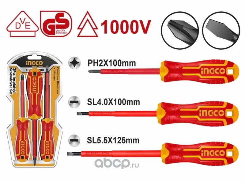 | INGCO | HKISD0308 | Набор диэлектрических отверток 3 шт | ||