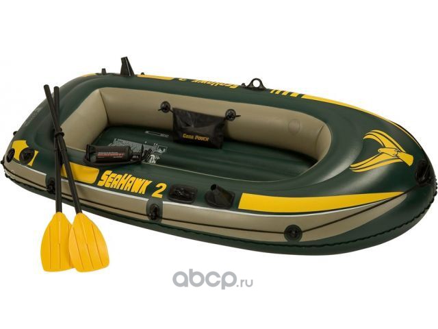 Надувная лодка двухместная Seahawk 2, 236х114х41 см + весла пластик. 122 см, насос ручной,
