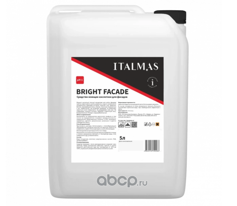 | ITALMAS | 266 | Кислотное моющее средство для фасадов BRIGHT FACADE 5л | ||