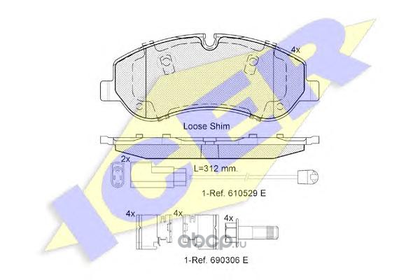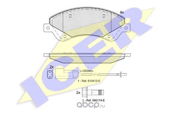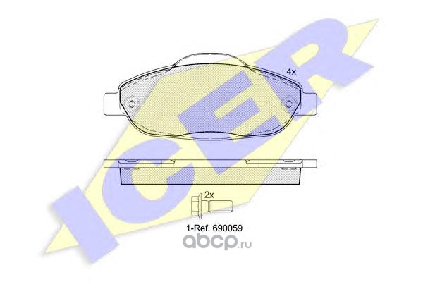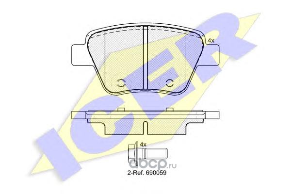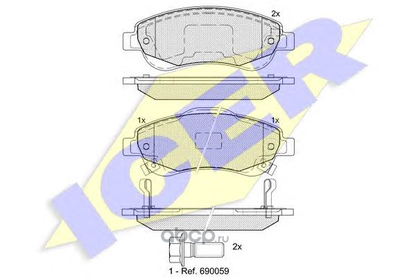 | Icer | 180697703 | Комплект тормозных колодок, дисковый тормоз | ||