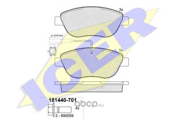 | Icer | 181440701 | Комплект тормозных колодок, дисковый тормоз | ||