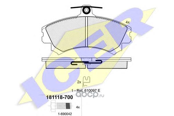| Icer | 181118700 | Комплект тормозных колодок, дисковый тормоз | ||