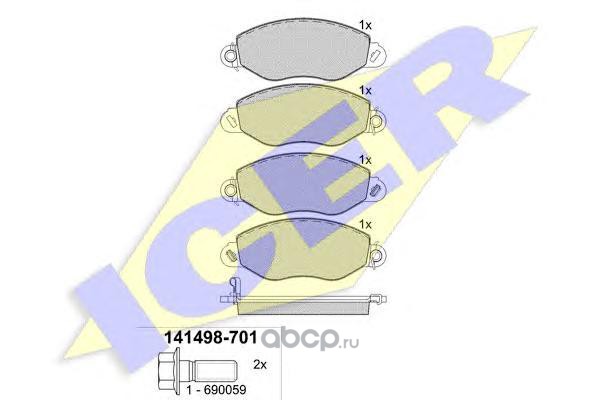 | Icer | 141498701 | Комплект тормозных колодок, дисковый тормоз | ||