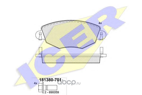 | Icer | 181380701 | Комплект тормозных колодок, дисковый тормоз | ||