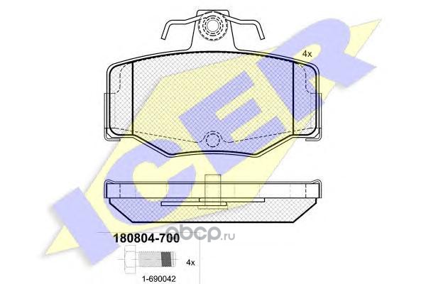 | Icer | 180804 | Комплект тормозных колодок, дисковый тормоз | ||