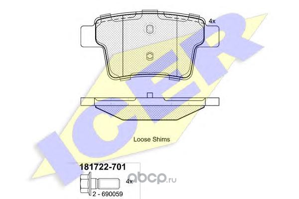 | Icer | 181722701 | Комплект тормозных колодок, дисковый тормоз |