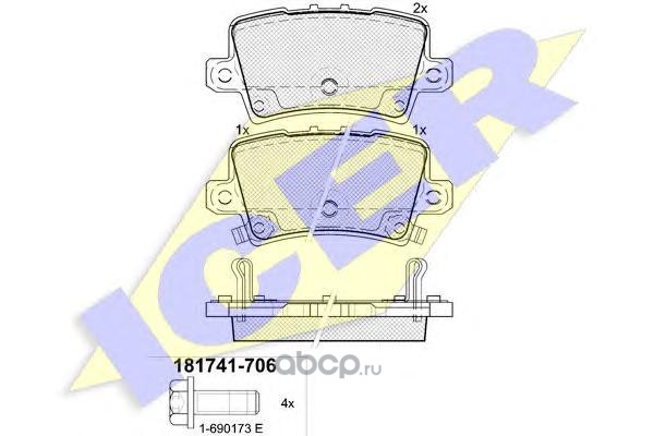| Icer | 181741706 | Комплект тормозных колодок, дисковый тормоз | ||
