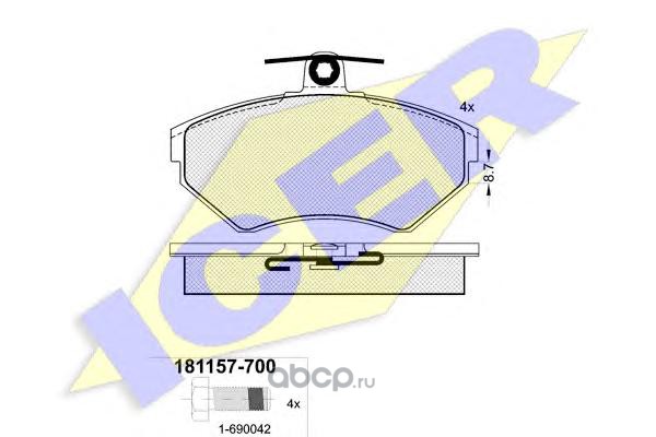 | Icer | 181157700 | Комплект тормозных колодок, дисковый тормоз | ||