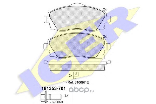 | Icer | 181353701 | Комплект тормозных колодок, дисковый тормоз | ||