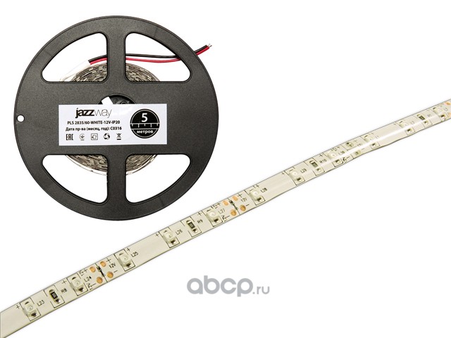 Лента светодиодная PLS 2835/60 (6.0 Вт/м, 480 Лм/м, 6500К, IP65, 12В (5 м в уп.) (60 диод/м, холодный белый свет, 8 мм)